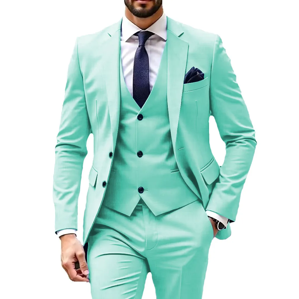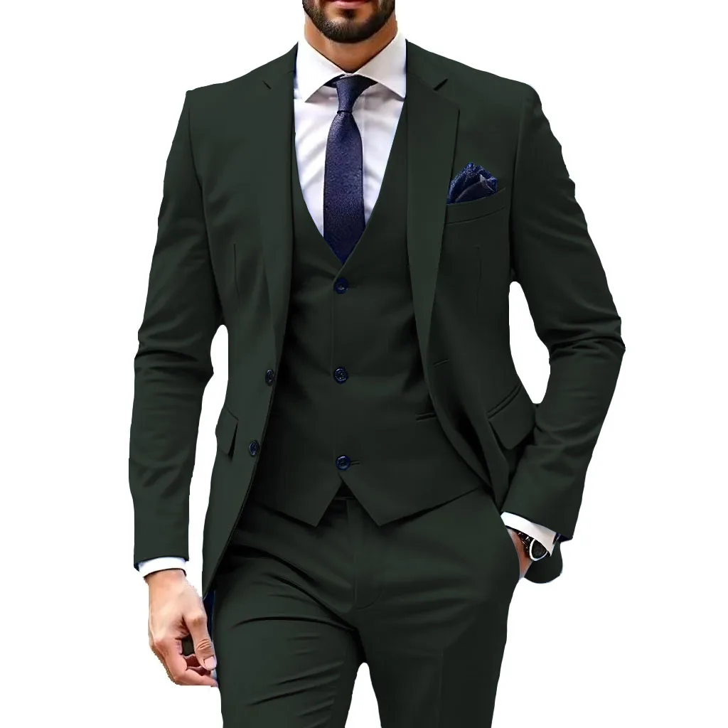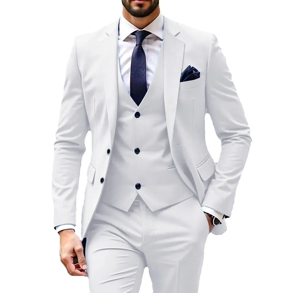 Luxury Customized Dress Suit for Men 3 Pieces Blazer Vest and Pant Set Peak Lapel Formal Slim Fit Business Wedding Suit for Men